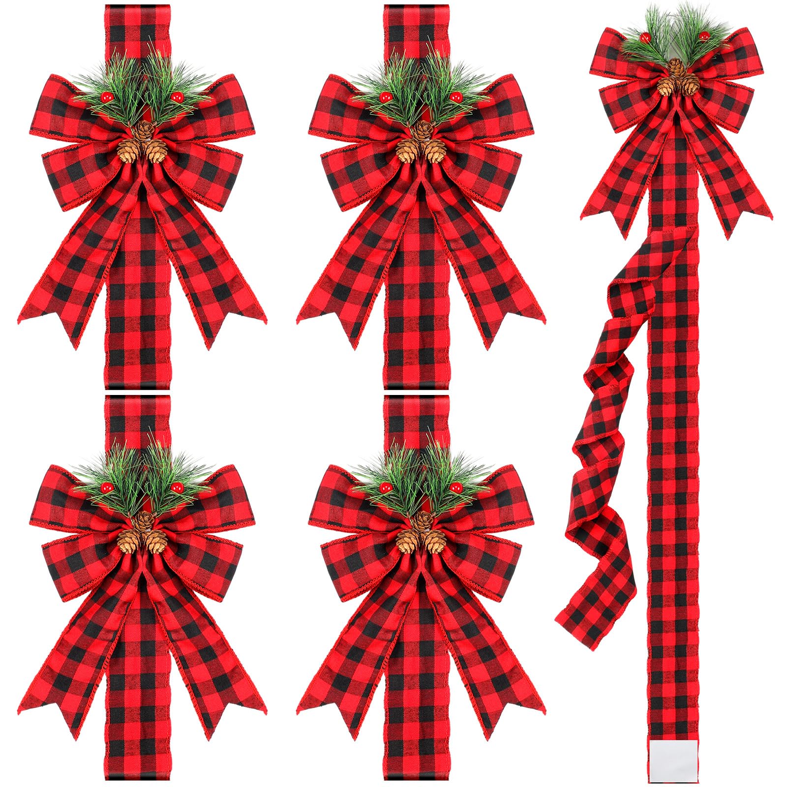 The set includes 10 bows, each with long ribbons that allow us to decorate cabinets or even larger doors. The red and black plaid color gives a traditional Christmas feel that fits many decorating styles.