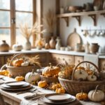 To create a simple Thanksgiving centerpiece for your kitchen table, focus on balance, size, and seasonal touches.