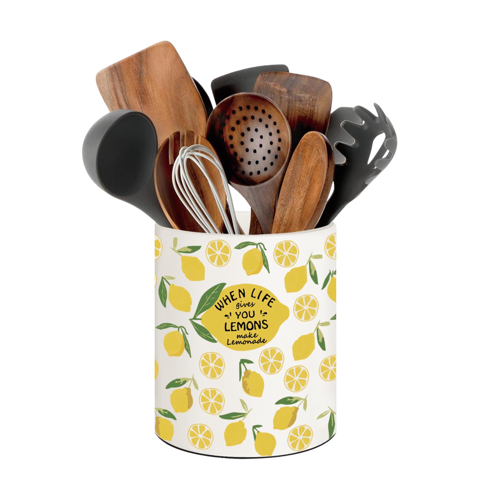 This lemon utensil holder feels bright and sturdy—great if you want to add a fresh, cheerful touch to your kitchen.