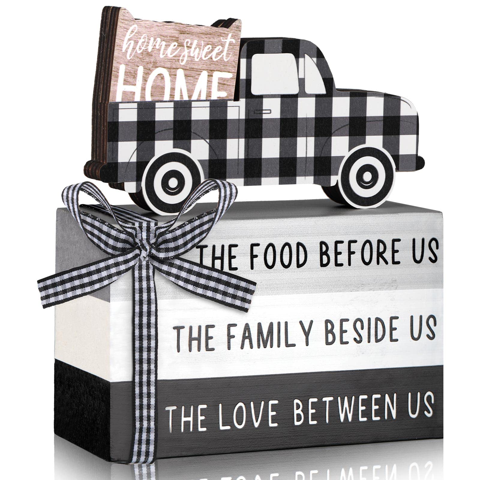 We put this decor on our kitchen shelf and it brought in that subtle farmhouse vibe. The wood feels solid, and the little truck with plaid design is just plain welcoming.