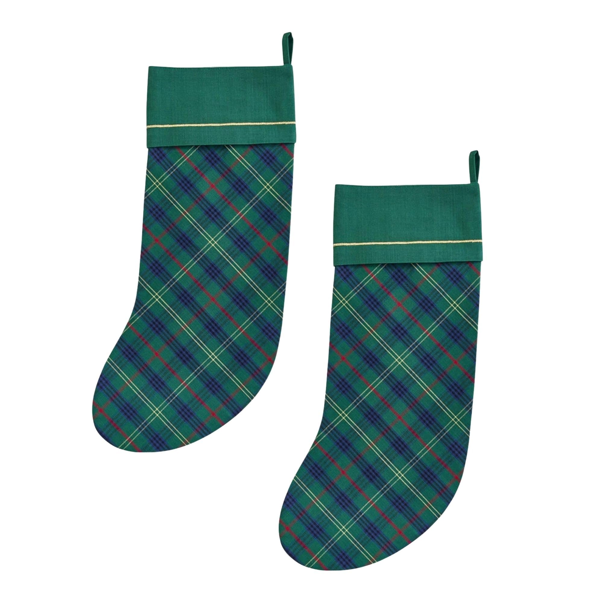 We liked how these stockings feel sturdy yet soft. The blue-green tartan pattern adds a cozy look that reminds us of simpler holiday days. The gold embroidery lifts the design just enough to keep it elegant without feeling overdone.